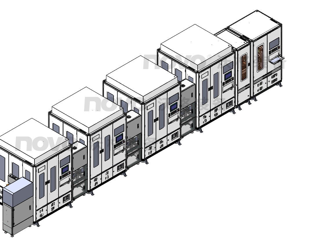 该设备采用了标准化Feeder供料系统,通过视觉飞拍实现快速产品判定和定位,多相机联合标定实现产品间位置定位和引导,高精度直线电机和模组实现精确组装,阿特拉斯电批实现精确扭力输出和扭力实时监控,连线AOI检测机能够快速、准确监控产品组装良率品质;稳定的机械结构、模块化电气、软件系统确保设备高品质、高效、稳定和稼动率。