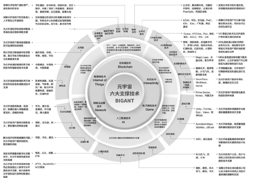 图:元宇宙BIGANT六大技术全景图(图源:中译出版社《元宇宙通证》)