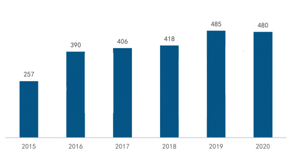 2016-2018年受到国内高世代线产能快速释放的影响,液晶面板整体供大于求,面板行业价格显著下降。如32寸面板从2017年8月的70美元/片下跌到2018年底的42美元/片左右,价格下降40%,面板厂商盈利能力进一步走低。随着各厂商调整产品结构,以韩国为首的面板厂商开始布局OLED产线,逐步关闭或者转换LCD产线,面板价格跌幅趋缓,2019年以来32寸、43寸、55寸主流液晶电视面板的价格逐步企稳。