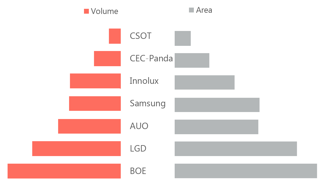 TCL华星(CSOT)出货数量为90万片,同比出货大幅度增加。尺寸结构中主要为套切的21.5英寸为主,27英寸及31.5英寸同比有较大幅度成长。但品牌客户基础较为匮乏,需要不断丰富产品线及积累更多客户。