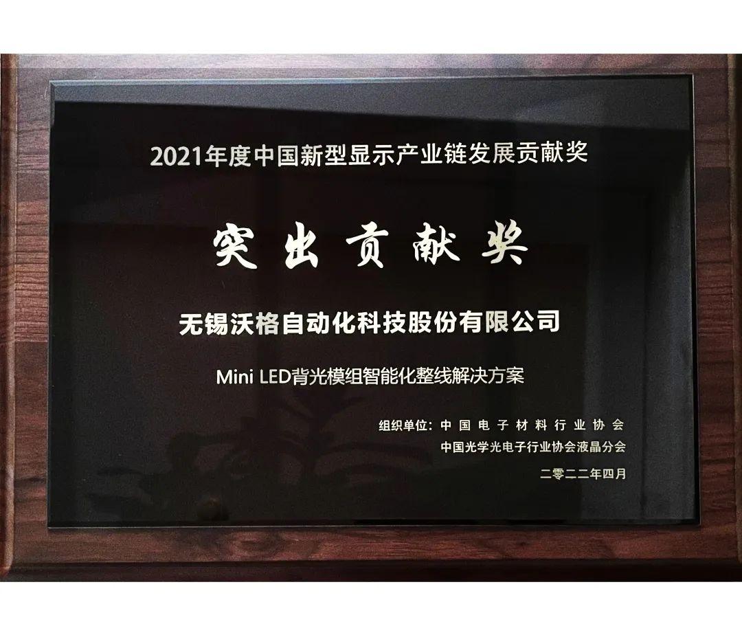 美狮会装备「Mini LED背光模组智能化整线解决方案」荣获“2021年度中国新型显示产业链发展贡献奖——突出贡献奖”