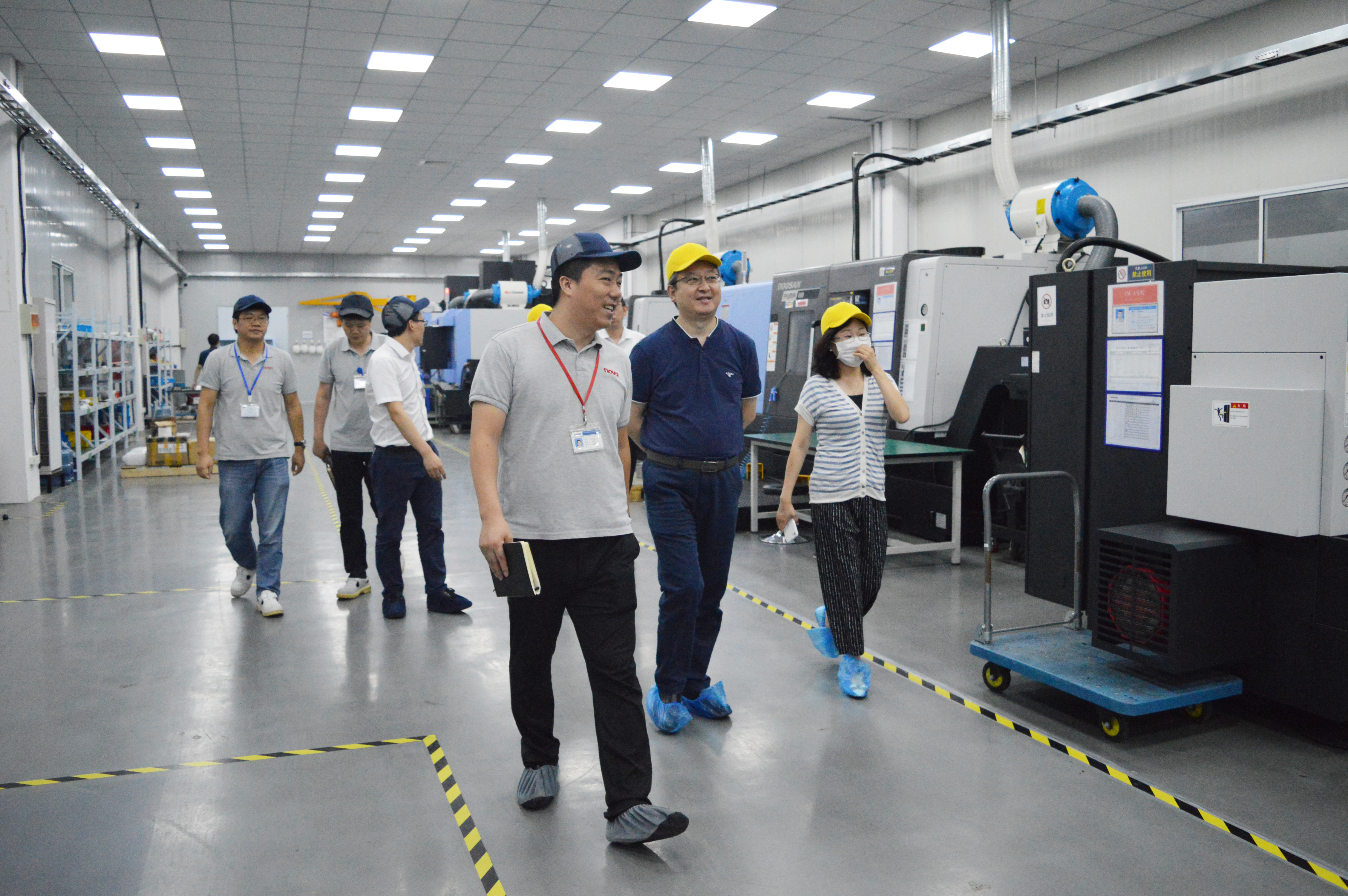 图3 美狮会装备总经理郑俭先生带领协会领导们参观CNC车间